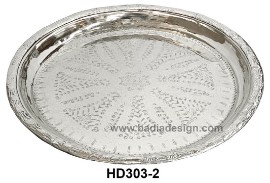 Moroccan Brass Serving Tagine with Burgundy Embroidery Fabric