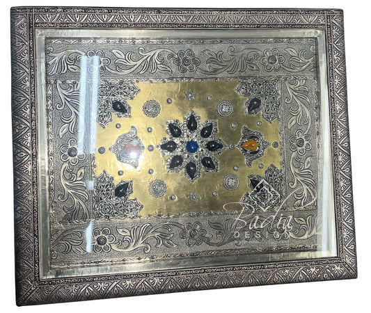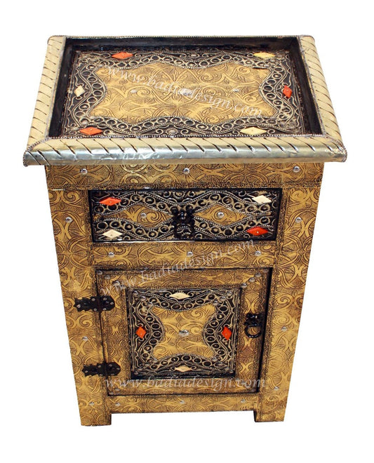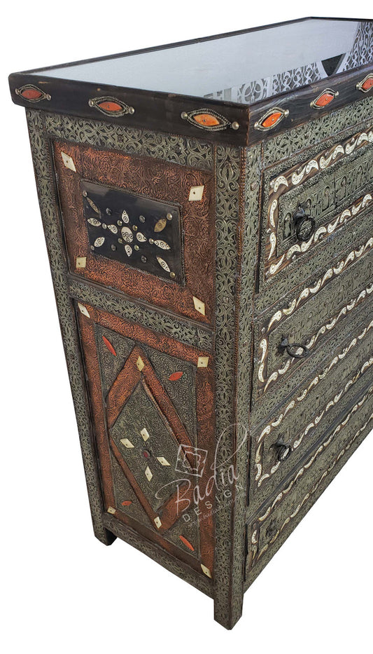 Tall Pyramid Shaped Metal and Bone Cabinet