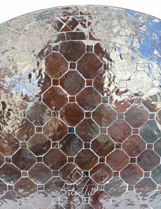 36 Inch Dark Brown Round Tile Table Top