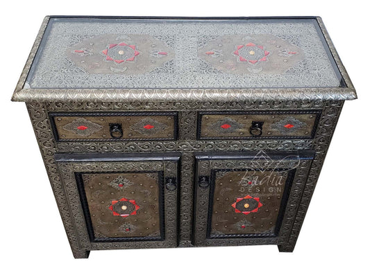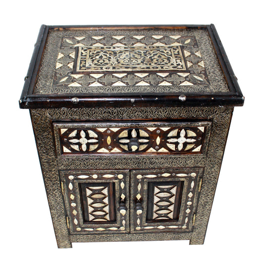 Intricate Embossed Metal and Bone Inlay Cabinet