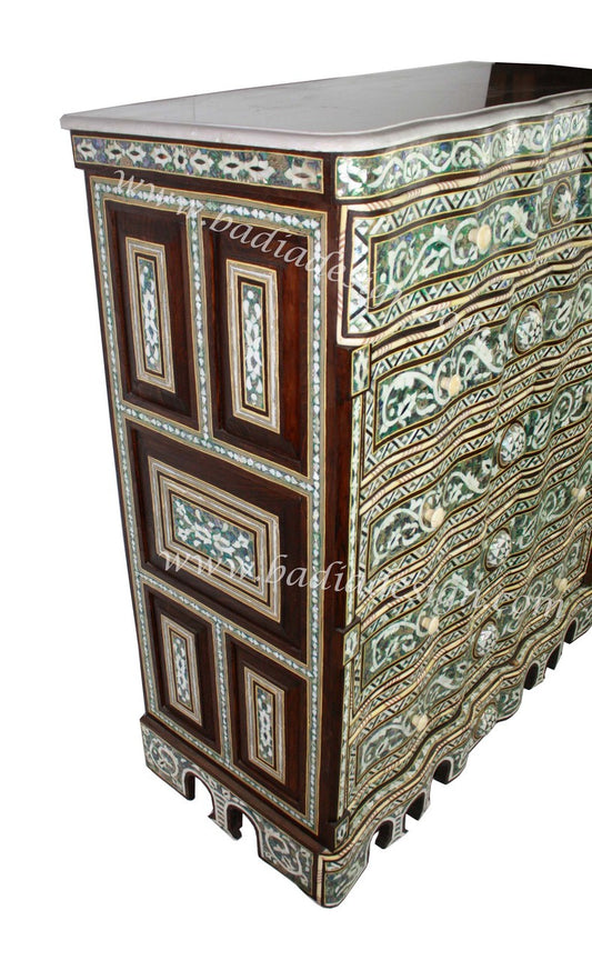 Syrian Mother of Pearl Inlay Dresser with White Marble Top