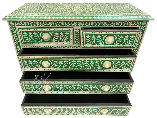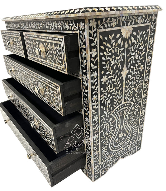 Blue Mother of Pearl Inlay Dresser with 5 Drawers