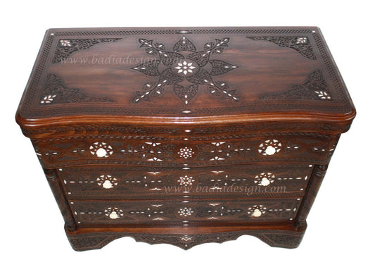 White Mother of Pearl Inlay Dresser with Three Drawers