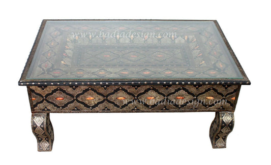 Embossed Metal and Bone Inlay Octagon Shaped Table