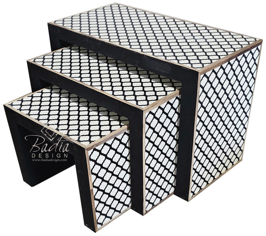 Black and White Wooden Resin Inlay Nesting Side Tables