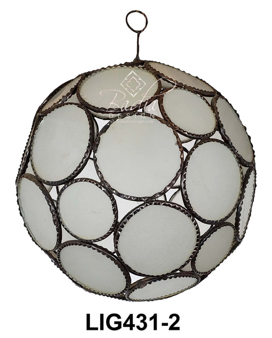 Oblong Shaped Hanging Brass Lamp with White Glass