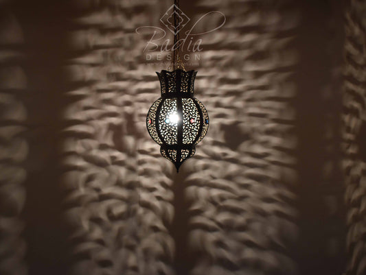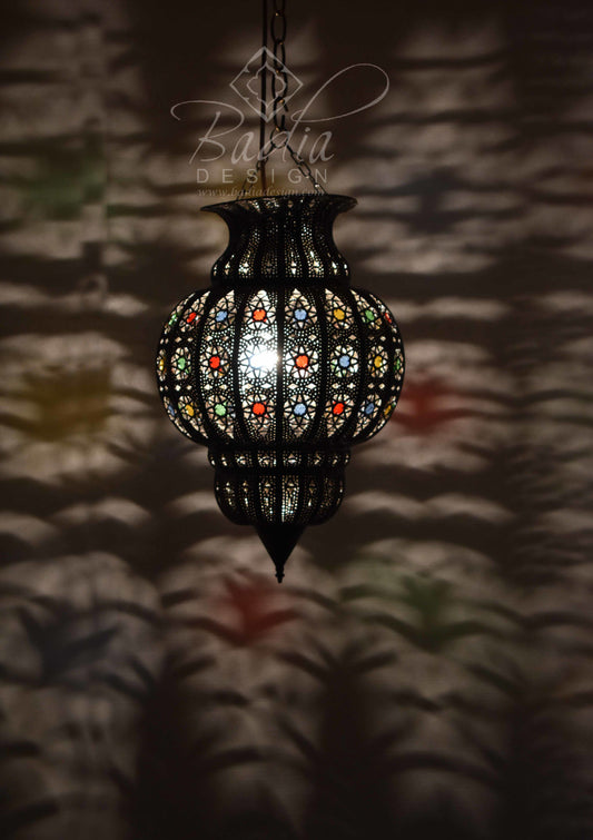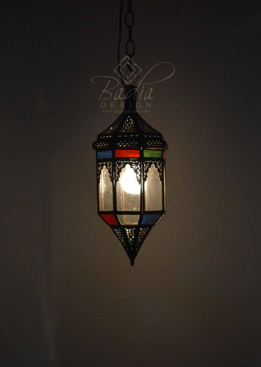 Mediterranean Style Lantern with Multi-Color Glass Eyelets