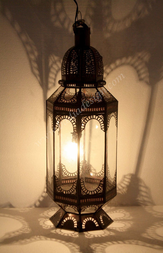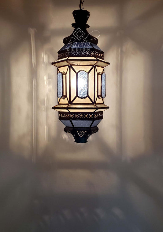 Large Hanging Lantern with Multi-Color Glass Eyelets
