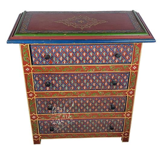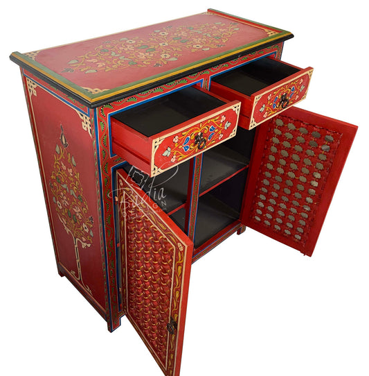Red Vintage Hand Painted Wooden Dresser Cabinet