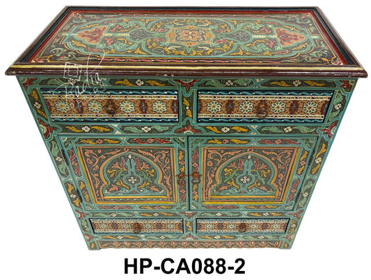 Multi-Color Cedar Carved Hand Painted Cabinet
