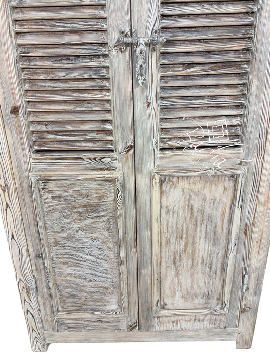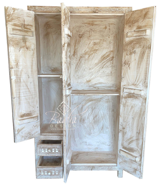 Hand Carved Moroccan Whitewashed Cedar Cabinet