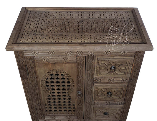 Light Stained Hand Carved Wooden Cabinet