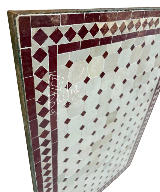 80" x 40" Red and White Intricately Designed Rectangular Tile Table Top