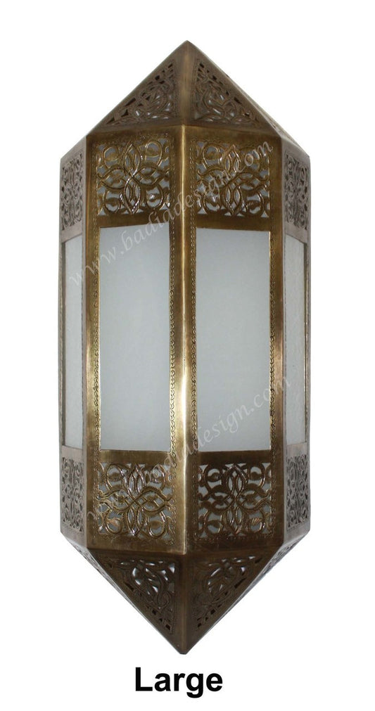 Moroccan Brass Wall Sconce with Amber and White Color Glass