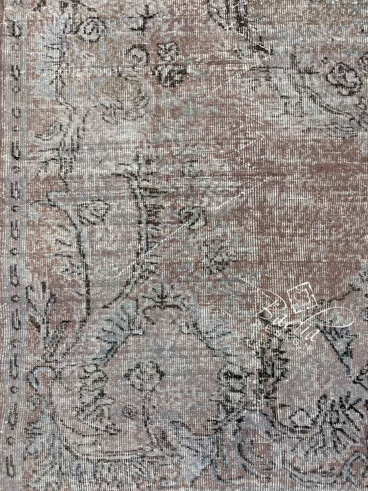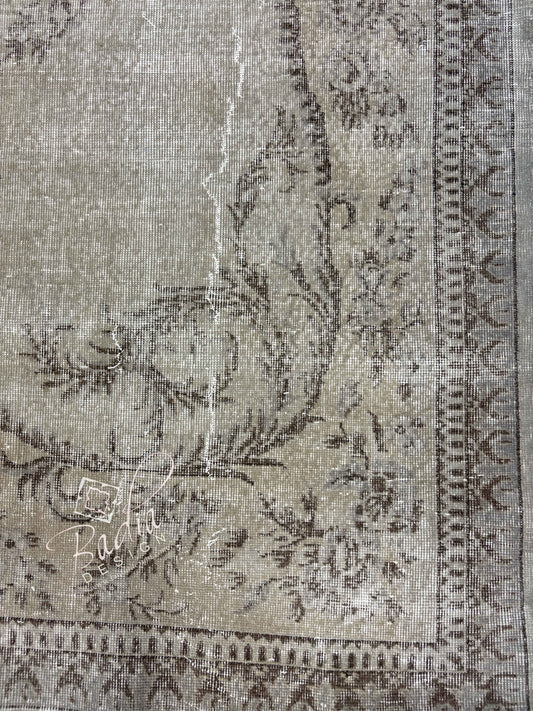 Neutral Vintage Rug with Ornate Floral Designs