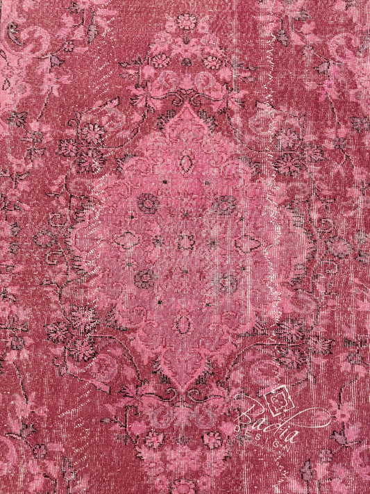 Burgundy Vintage Rug with a Floral Medallion Design