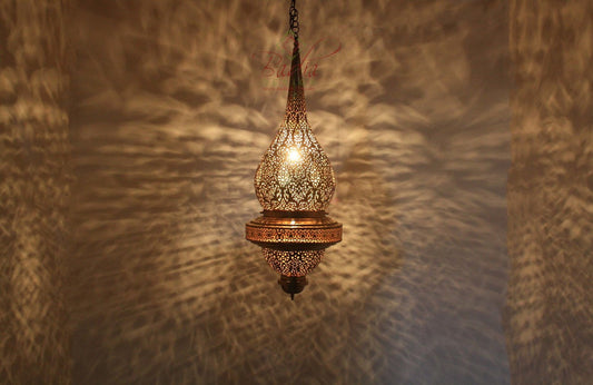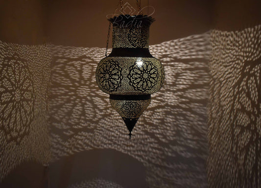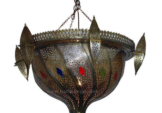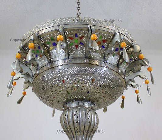 Moroccan Silver Chandelier with Multi-Color Glass Eyelets