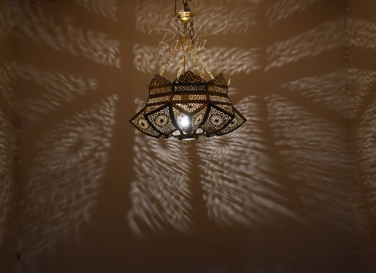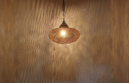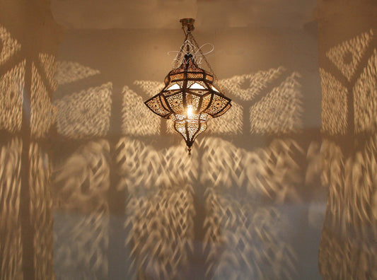 Hand Punched Brass Chandelier with White Glass Eyelets