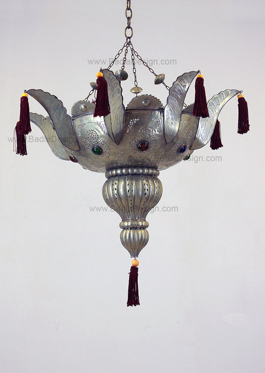Moroccan Silver Chandelier with Multi-Color Glass Eyelets