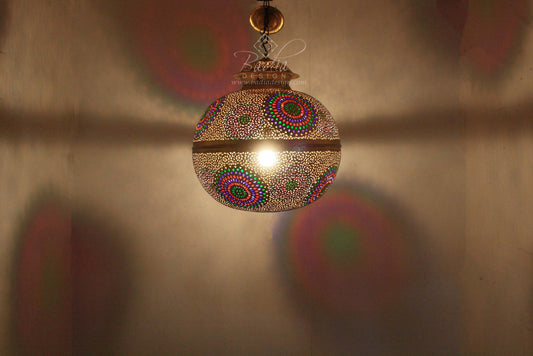 Large Hand Punched Hanging Brass Chandelier