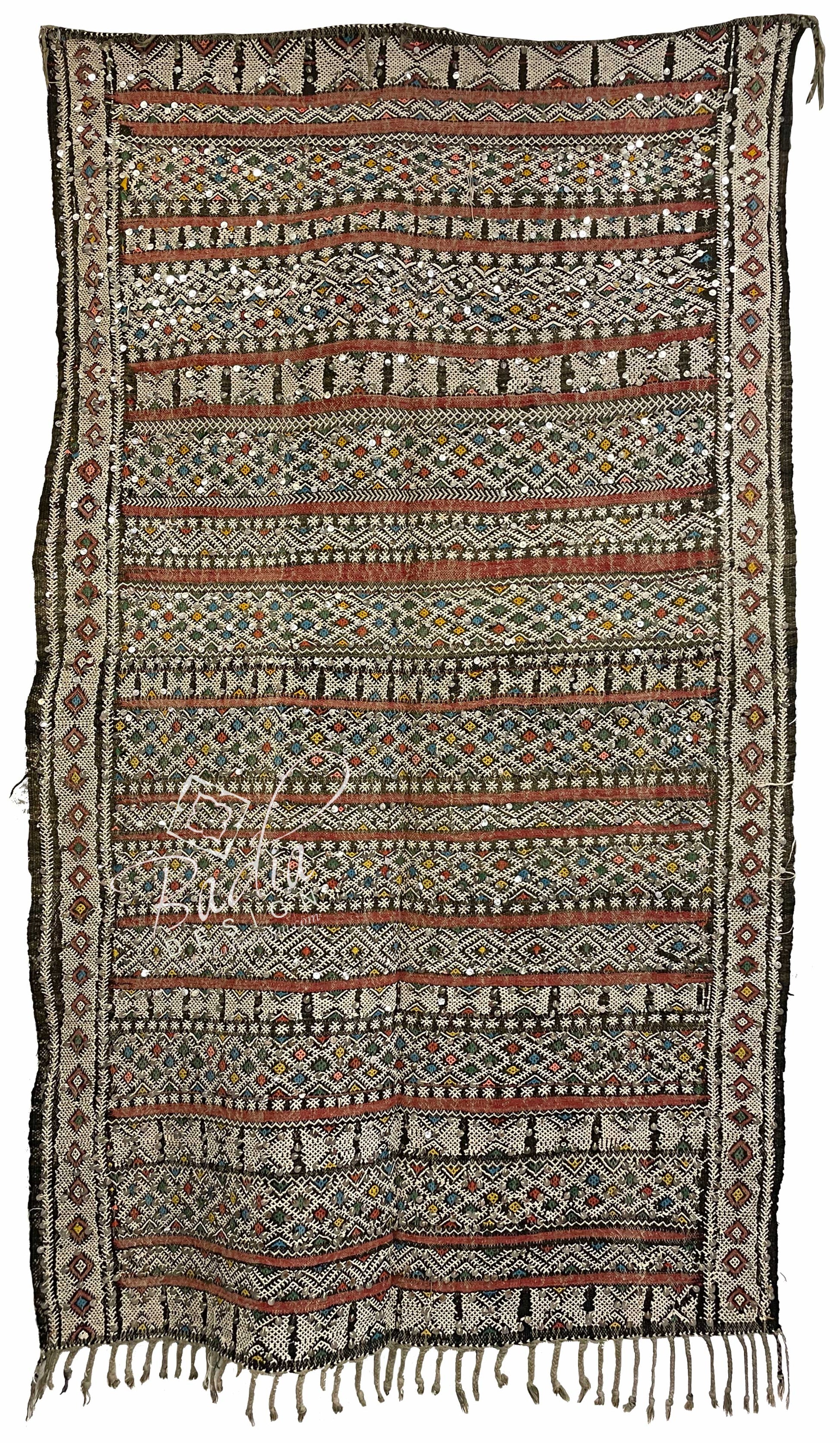 Authentic Moroccan Kilim Rug with Silver Sequins