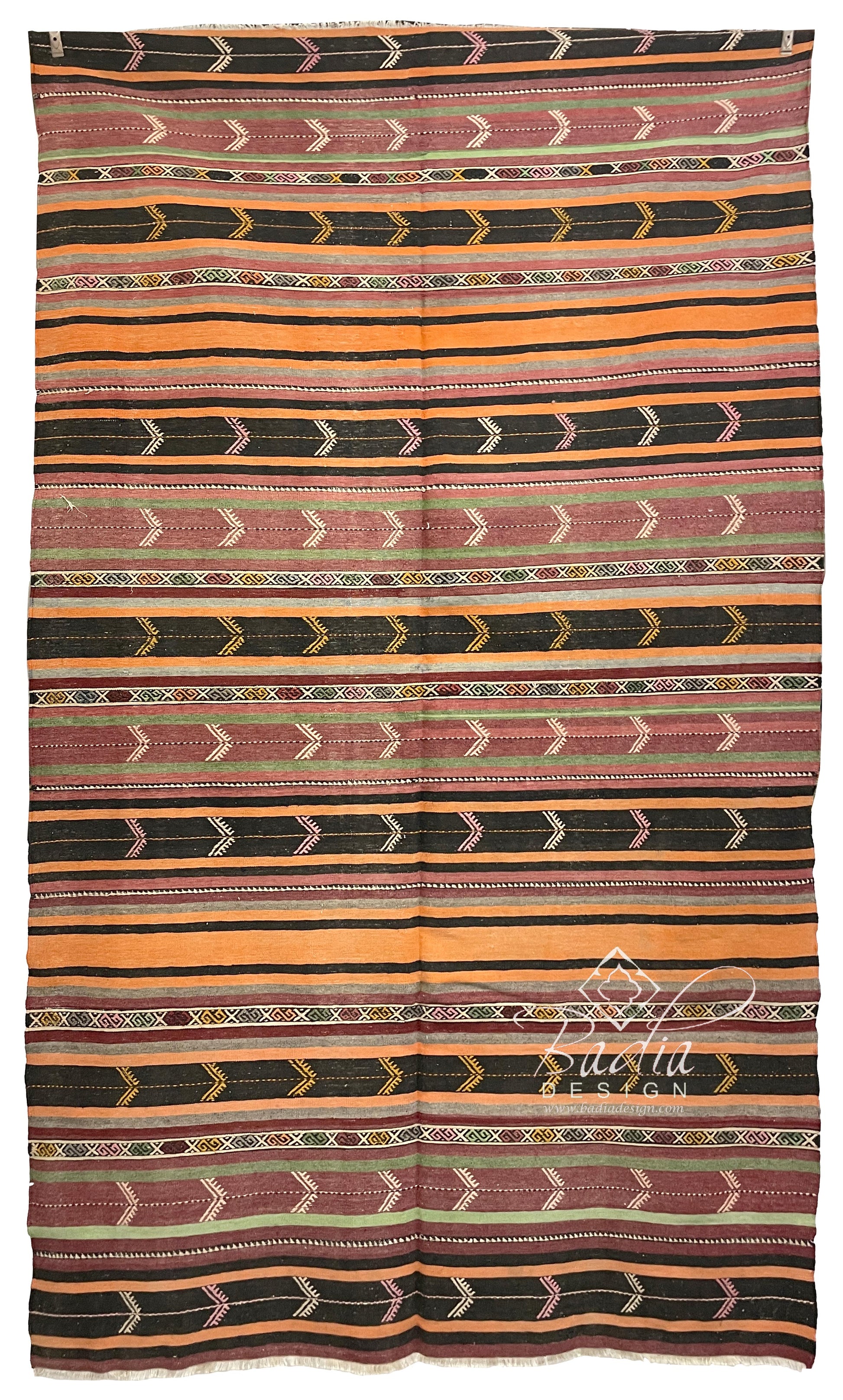 Orange Multi-Color Traditional Moroccan Kilim Rug