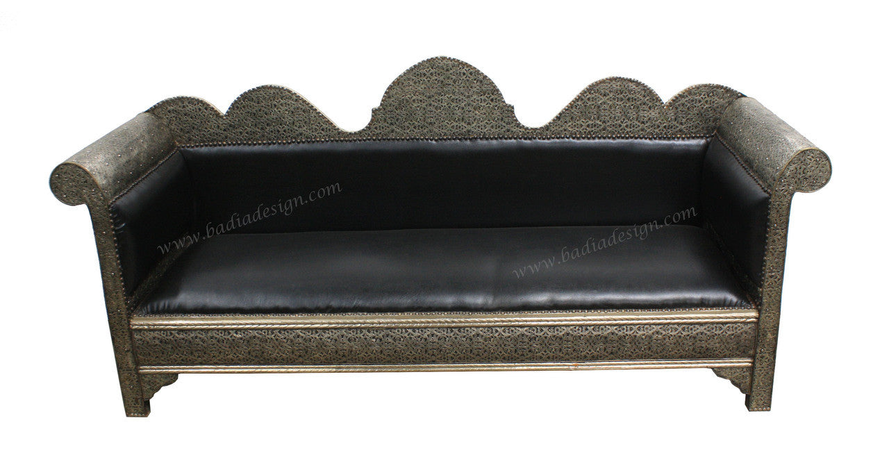 Carved Embossed Nickel Silver Sofa with Leather Seat