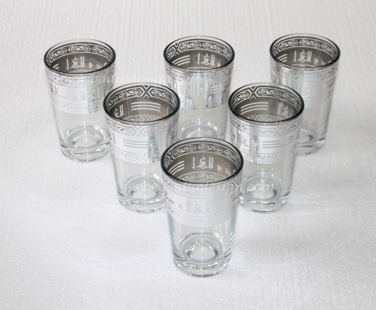 Silver Motif Moroccan Clear Tea Glass Set - Pack of 6