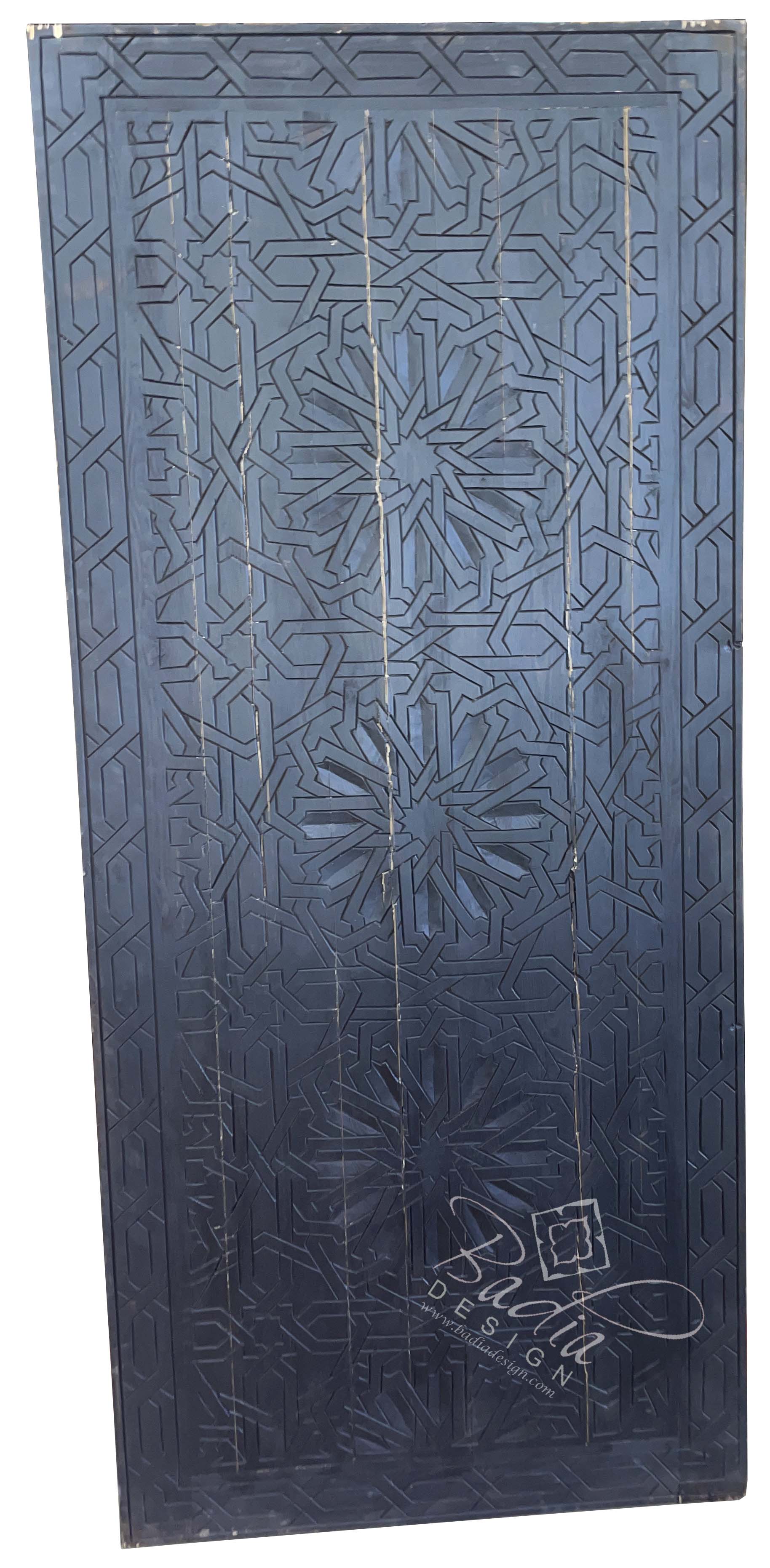 Moroccan Dark Stained Hand Carved Wooden DoorSize: 35 3/4" W x 2" D x 81" HStyle #: CWD039Note: Extra shipping costs may apply to this item due to its weight, size and your location. It may have to be shipped through a freight company and charges vary from state to state. You will be notified by email of any additional shipping charges once the item is packaged and ready for shipment. We always look for the most competitive shipping company to minimize shipping costs to our customers.