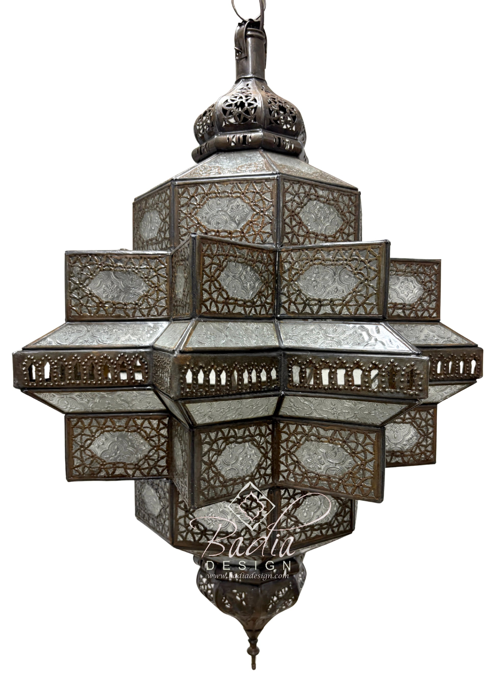 The frosted glass softens the light, making it perfect for creating ambiance in modern, traditional, or bohemian-inspired interiors. It also works beautifully in outdoor settings, where it adds a sense of elegance and warmth to patios, gardens, or terraces. Crafted by Moroccan artisans, each lantern reflects authentic design heritage and carries subtle handmade variations that make it one of a kind.