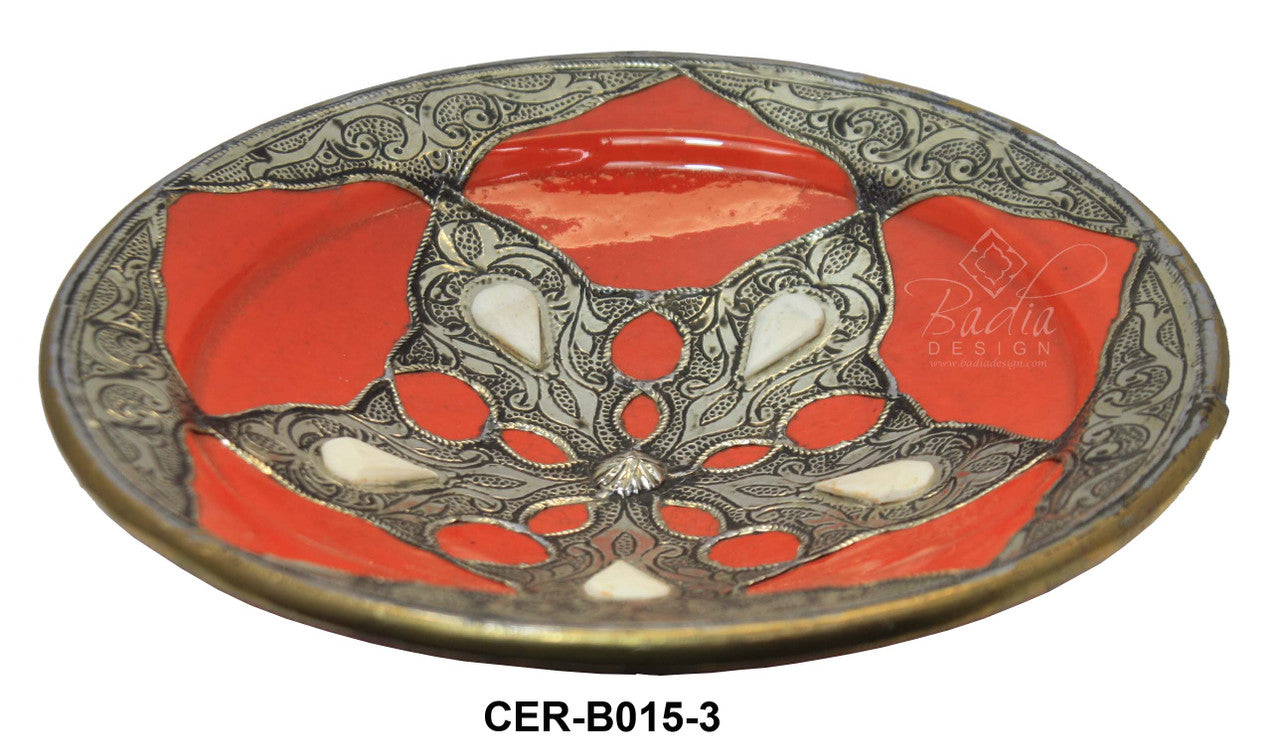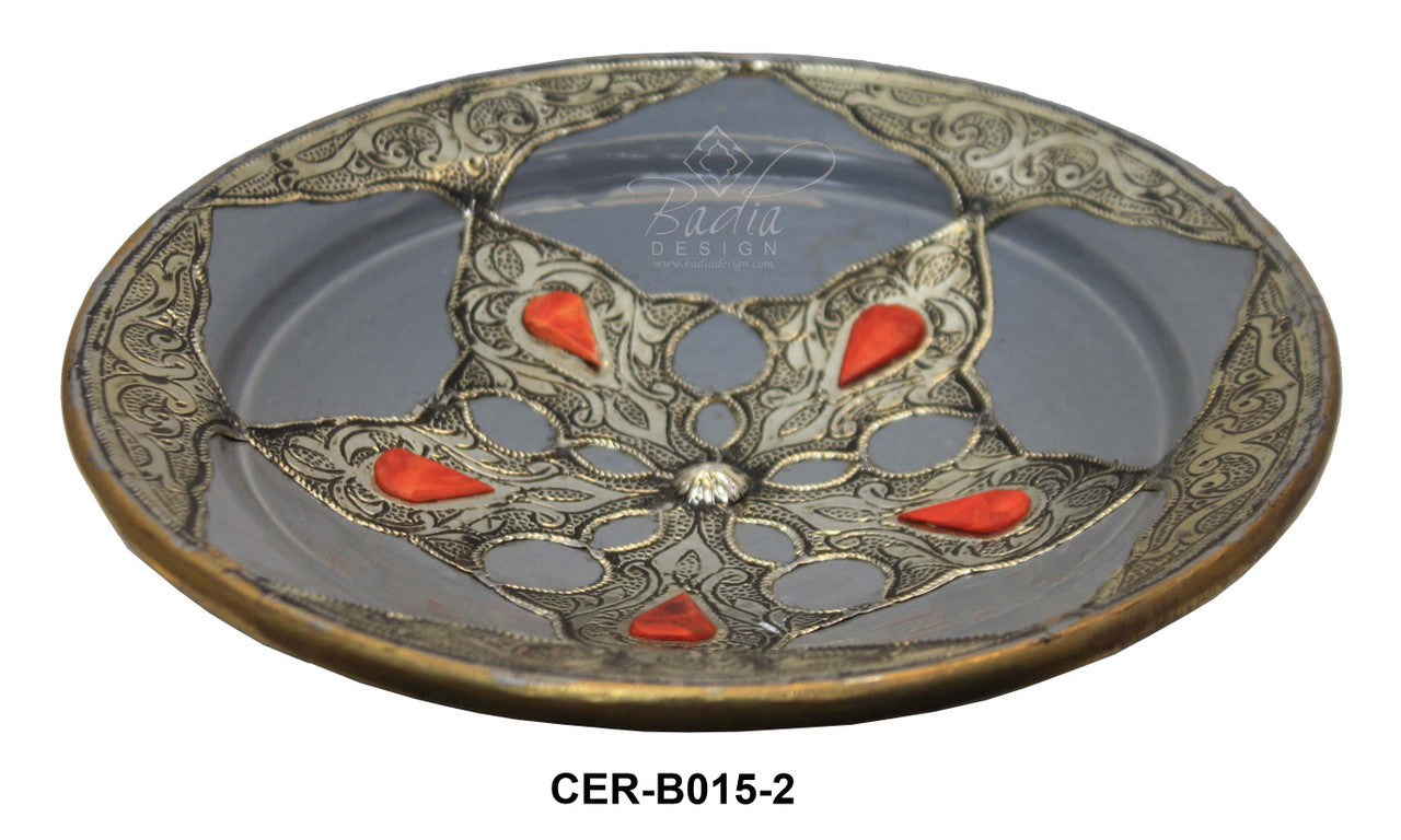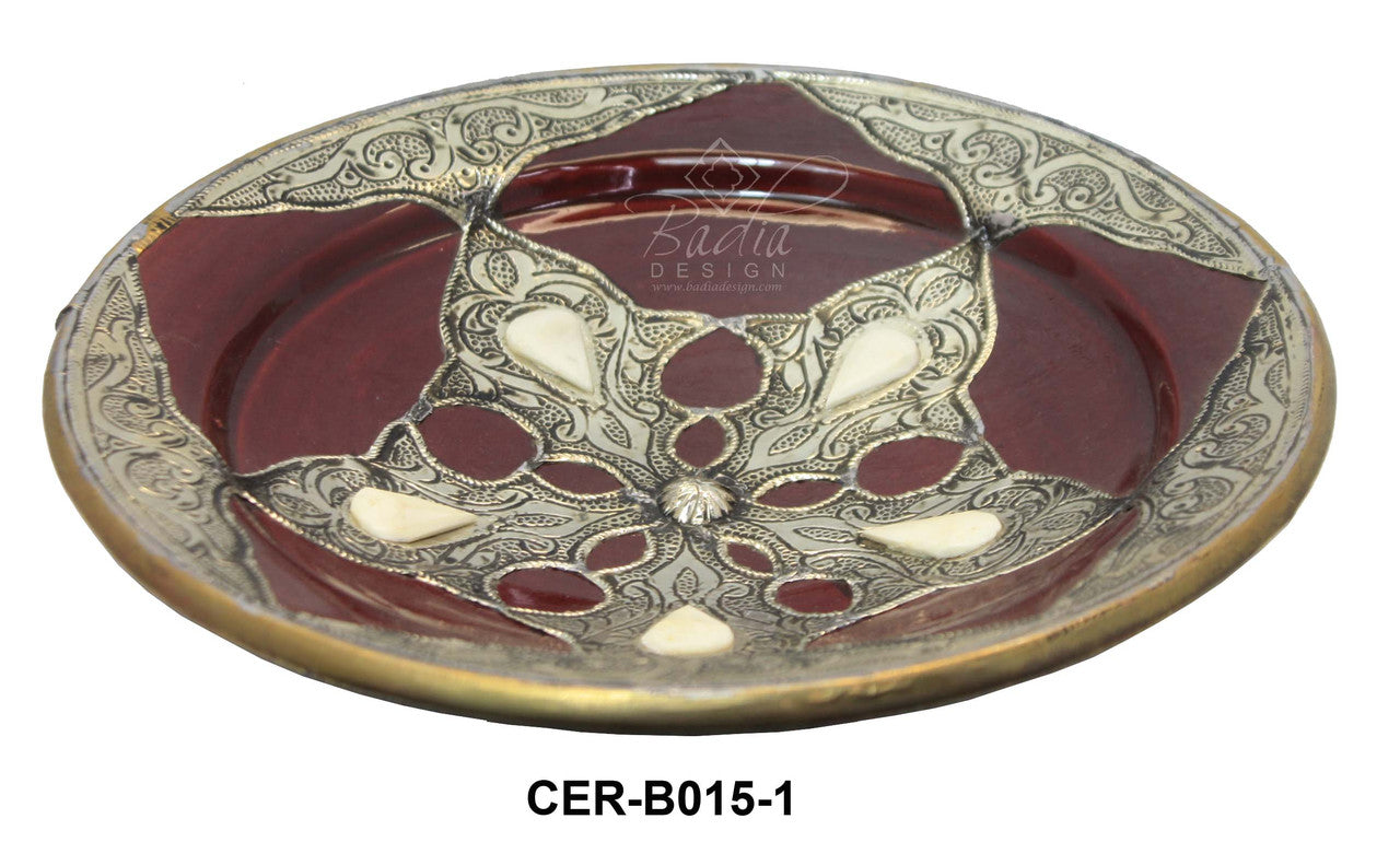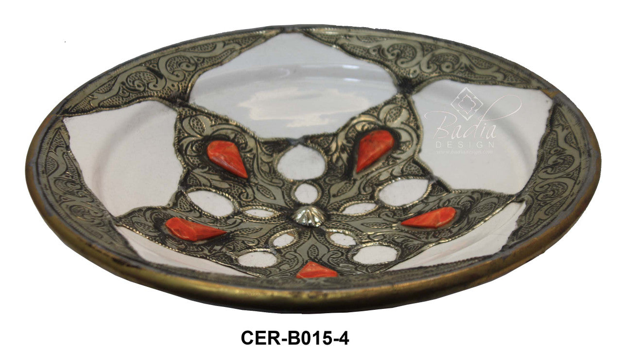 Hand Painted Ceramic Bowl with Metal and Camel Bone