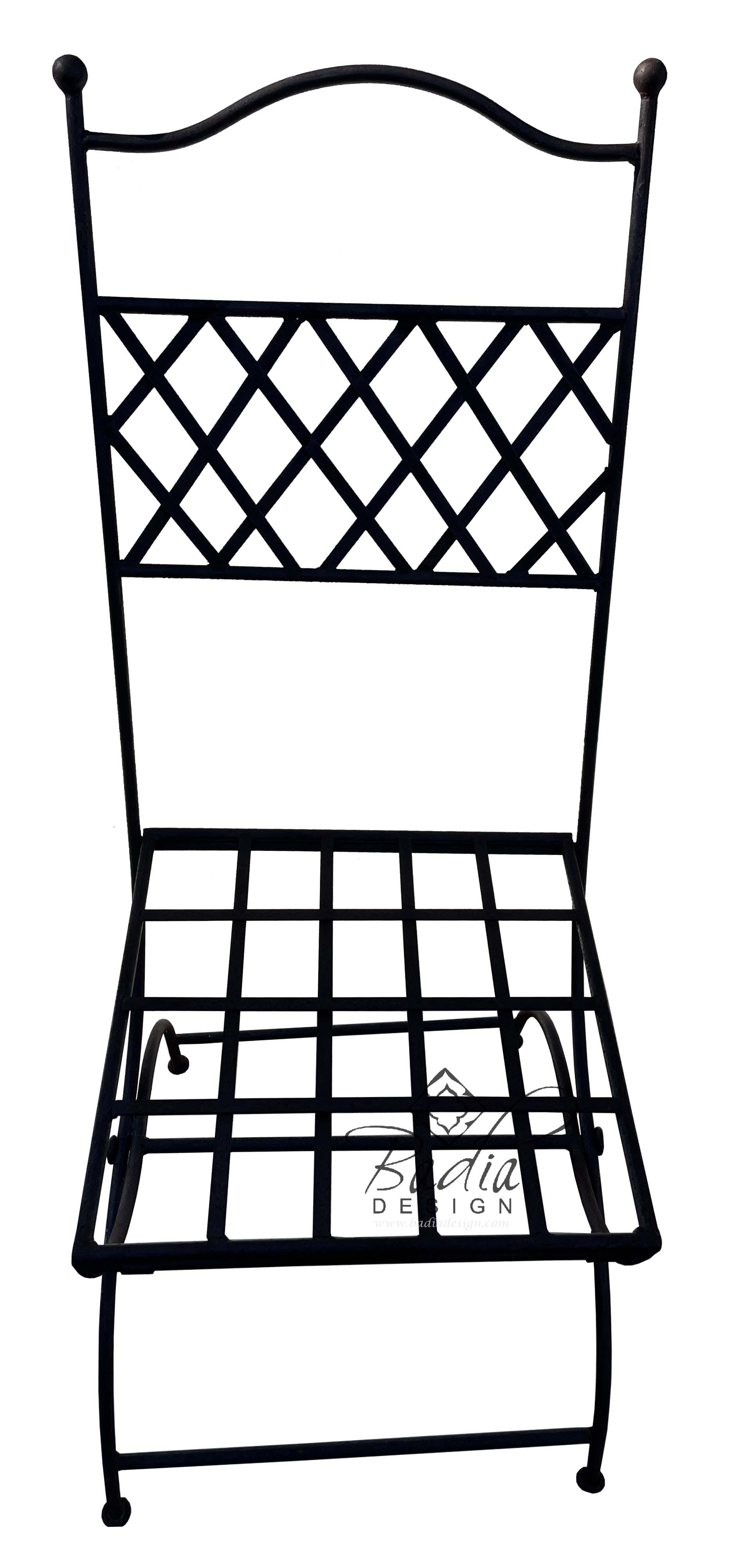 Moroccan Handmade Wrought Iron Chair - can be used outdoors or in doorsSize: 16 1/4" W x 21" D x 42" H, Seating Height is 17 1/2"Style #: IC038Note: Extra shipping costs may apply to this item due to its weight, size and your location. It may have to be shipped through a freight company and charges vary from state to state. You will be notified by email of any additional shipping charges once the item is packaged and ready for shipment. We always look for the most competitive shipping company to minimize shipping costs to our customers.