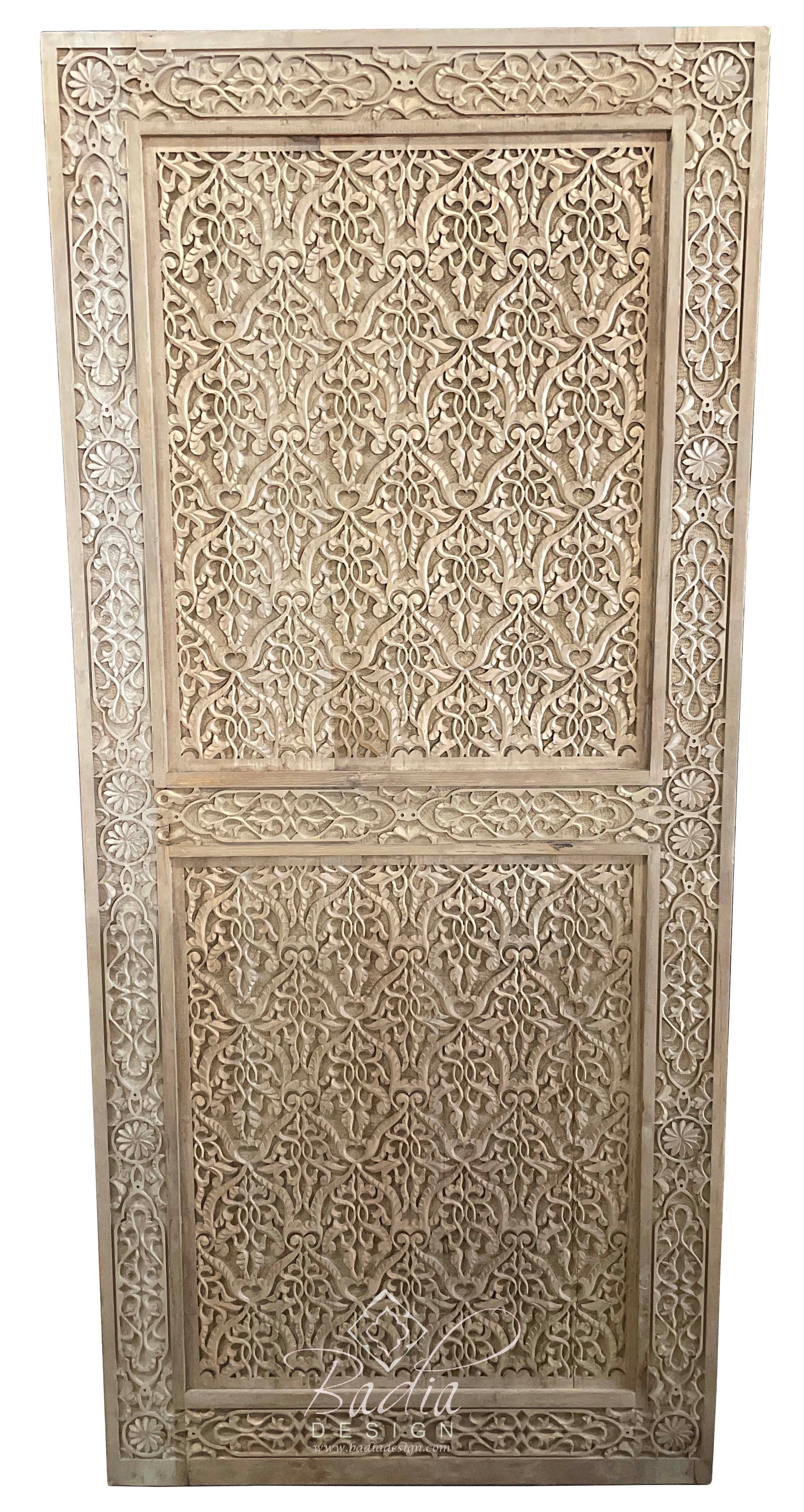 Light Stained Hand Carved Wooden DoorSize: 35 1/4" W x 1 3/4" D x 78 1/2" H Style #: CWD032Note: Extra shipping costs may apply to this item due to its weight, size and your location. It may have to be shipped through a freight company and charges vary from state to state. You will be notified by email of any additional shipping charges once the item is packaged and ready for shipment. We always look for the most competitive shipping company to minimize shipping costs to our customers.