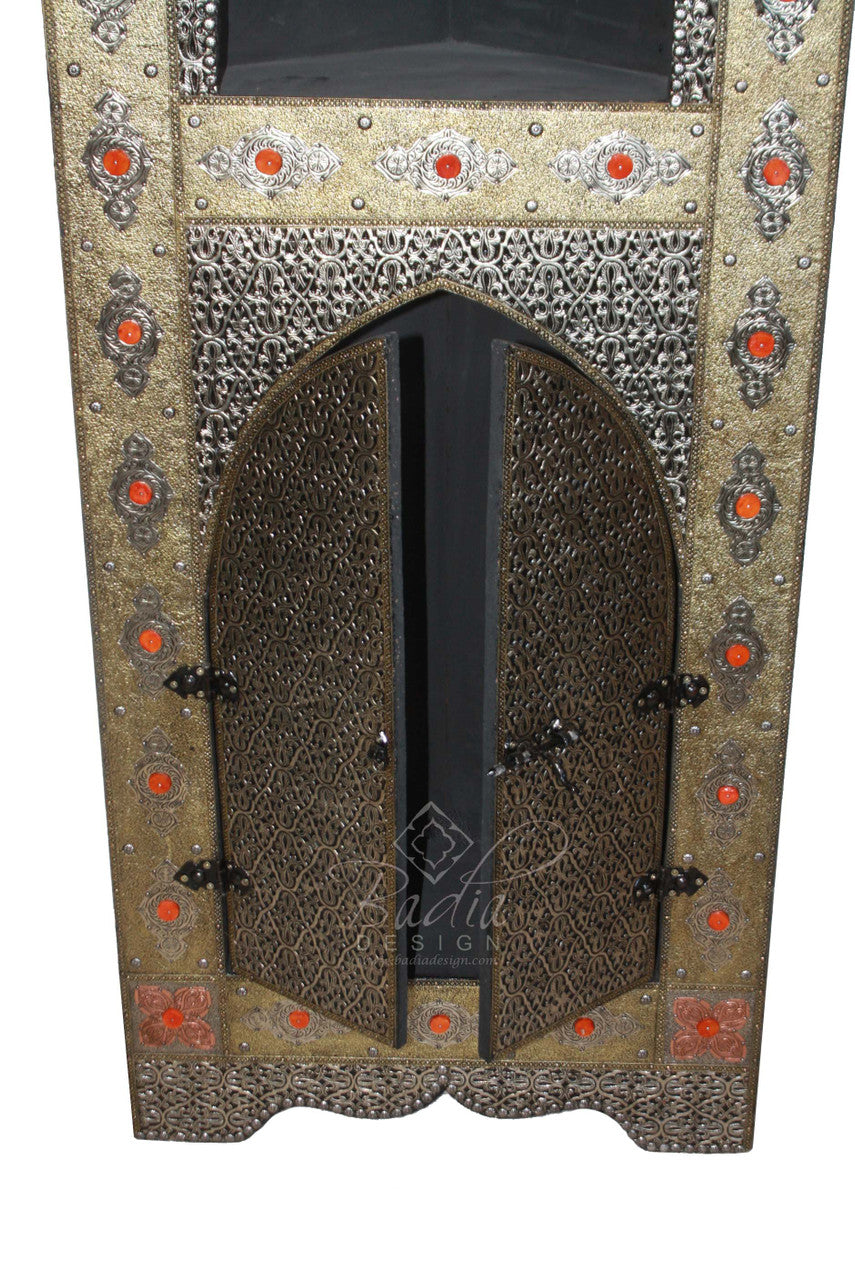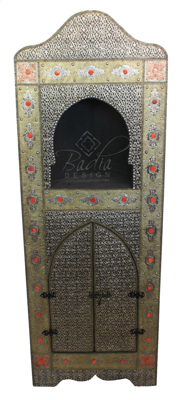 Shimmering with mystique and crafted with reverence our embossed metal Moroccan cabinets and nightstands exude a tactile tapestry of light, shadow, and heritage. Each piece is built by master artisans who apply sheets of hand-hammered metal—nickel, brass, or silver-toned alloys—over solid cedar wood forms, then meticulously emboss them with intricate Arabesque patterns, Berber symbols, or sacred geometry that catches the eye and captivates the soul.