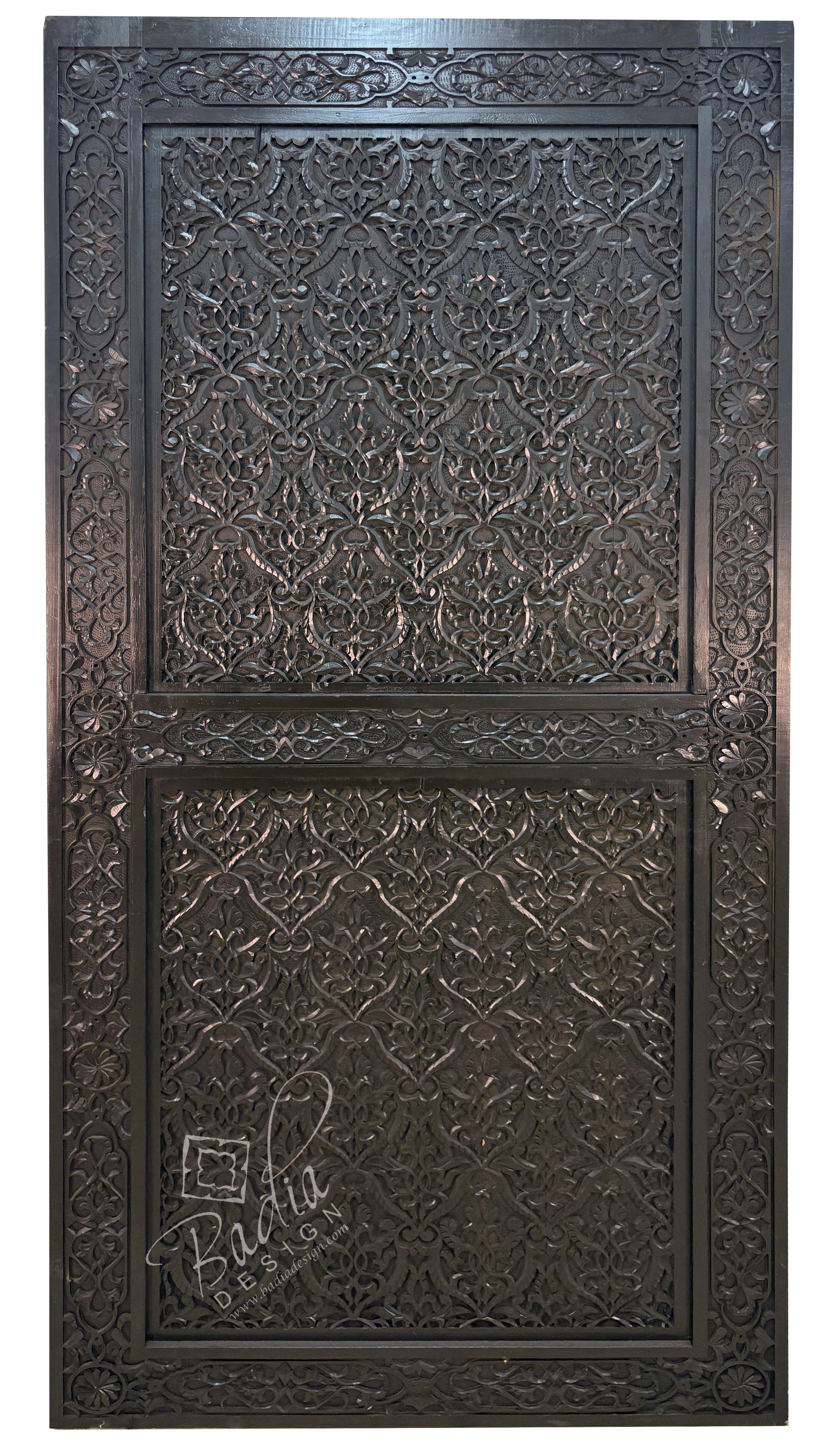Our Moroccan Stained Hand Carved Wooden Door is a stunning example of the artistry and heritage we bring to our customers at Badia Design Inc. Handcrafted in Morocco by our talented artisans, each door features intricate geometric and floral carvings that reflect centuries of cultural tradition. The deep stained finish enhances the natural beauty of the wood grain, creating an elegant and warm aesthetic that transforms any room or entryway.