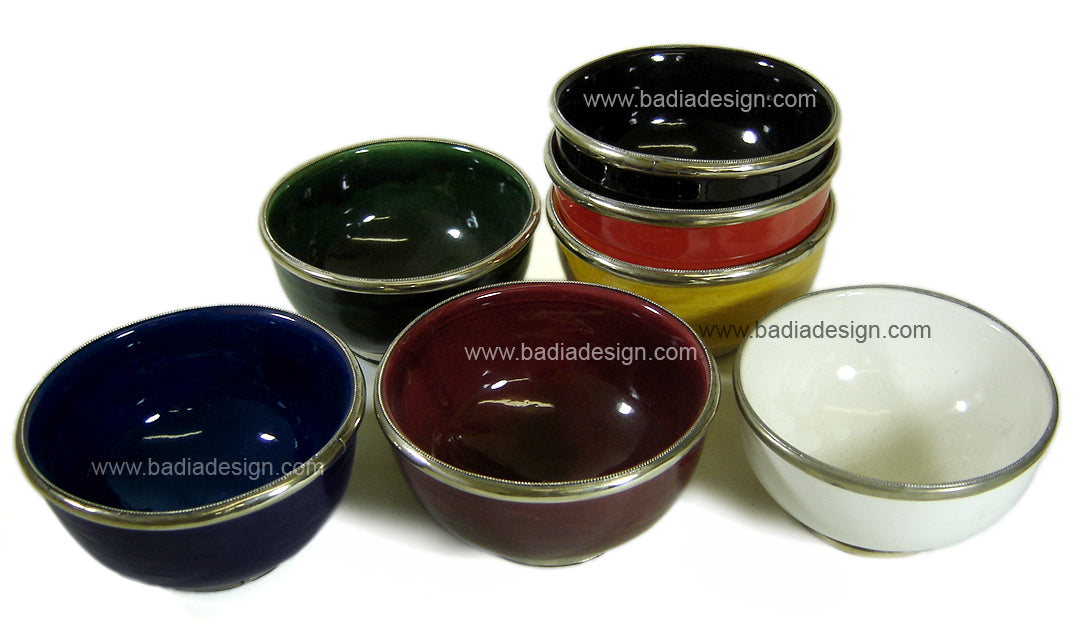 Hand Painted Moroccan Metal and Ceramic Bowl