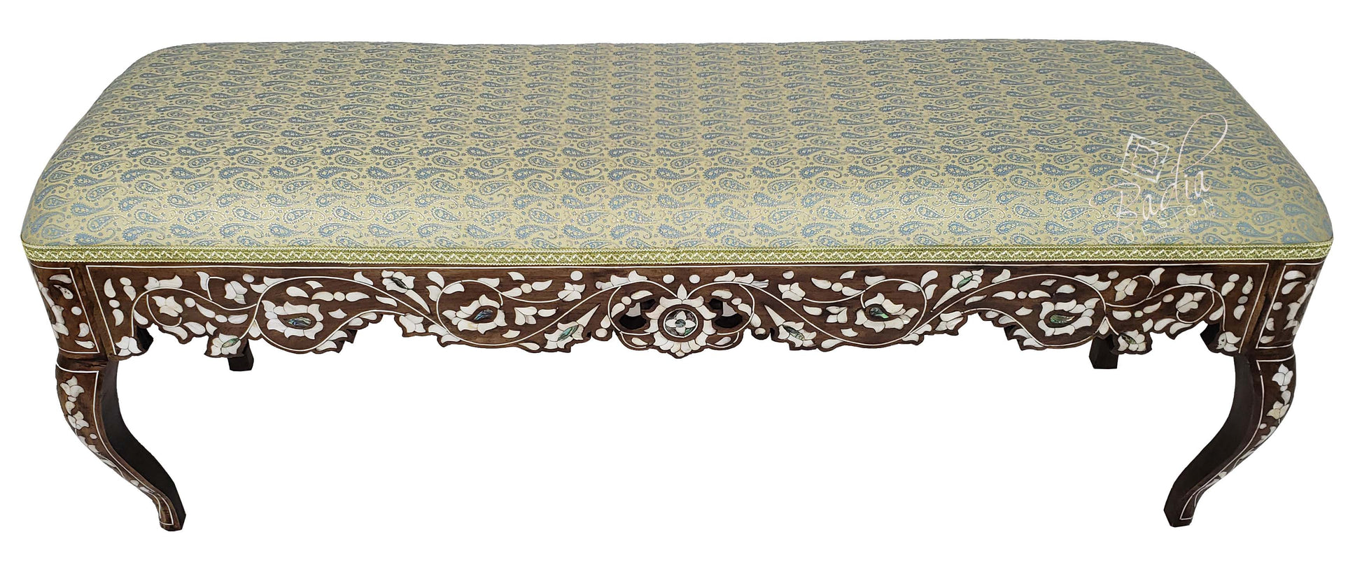 Moroccan Mother of Pearl Bench and Two Ottomans