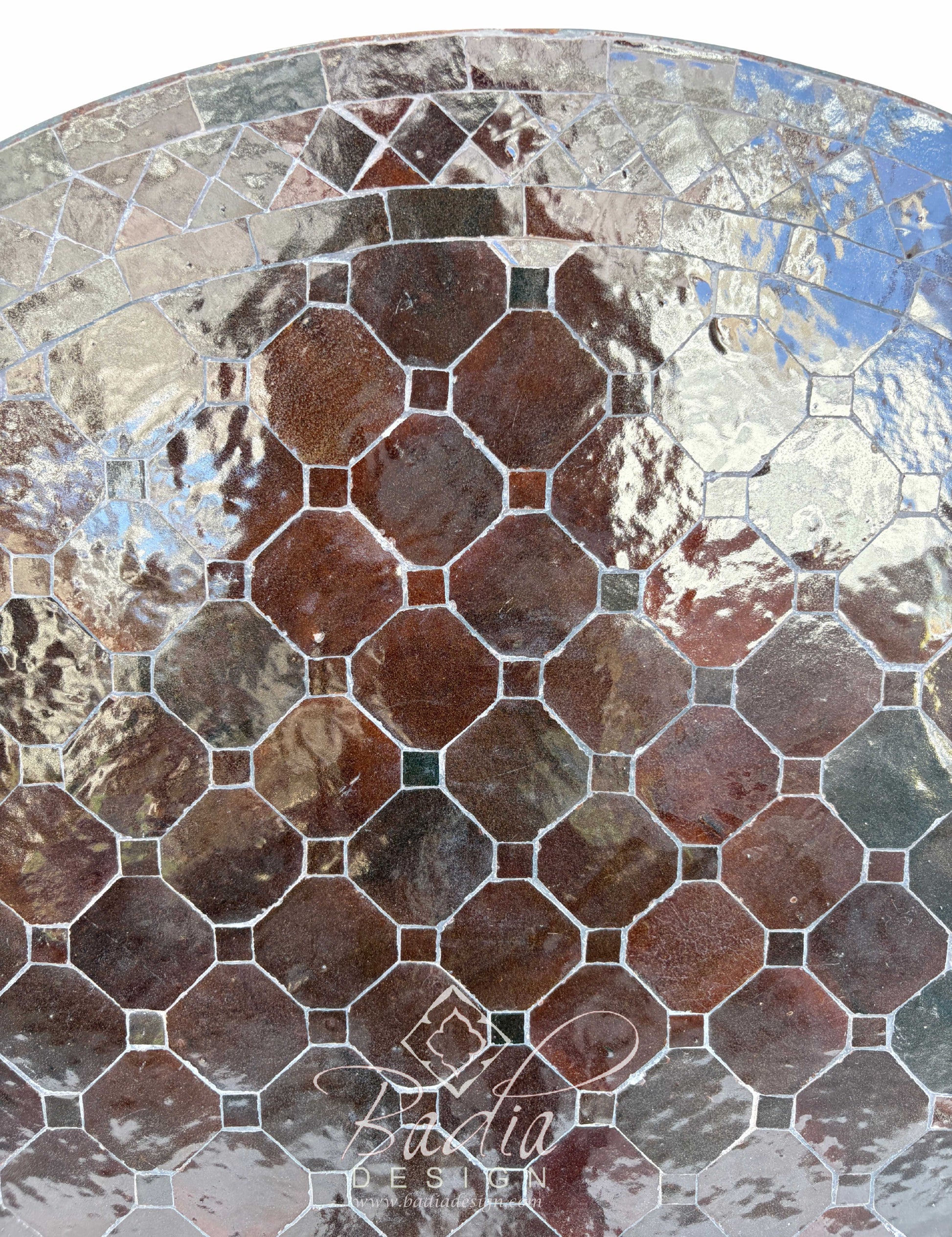 Bring warmth and depth to your home or outdoor space with the Moroccan Dark Brown Round Tile Table Top. Its rich brown tones and intricate handcrafted mosaic pattern create a bold yet timeless focal point. Perfect for patios, dining areas, and cozy garden corners, this versatile table top blends functionality with Moroccan artistry.