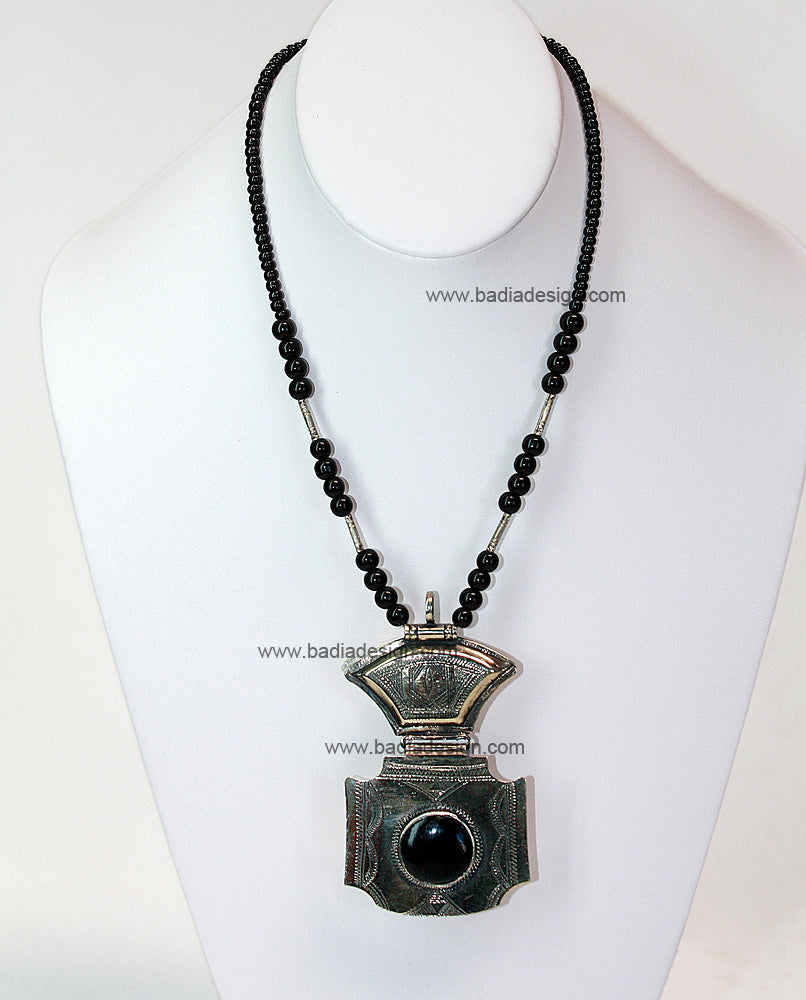 Moroccan Pendant NecklaceLength: 18" LongPendant Dimension: 2" W x 3 3/4" HStyle #: J038
