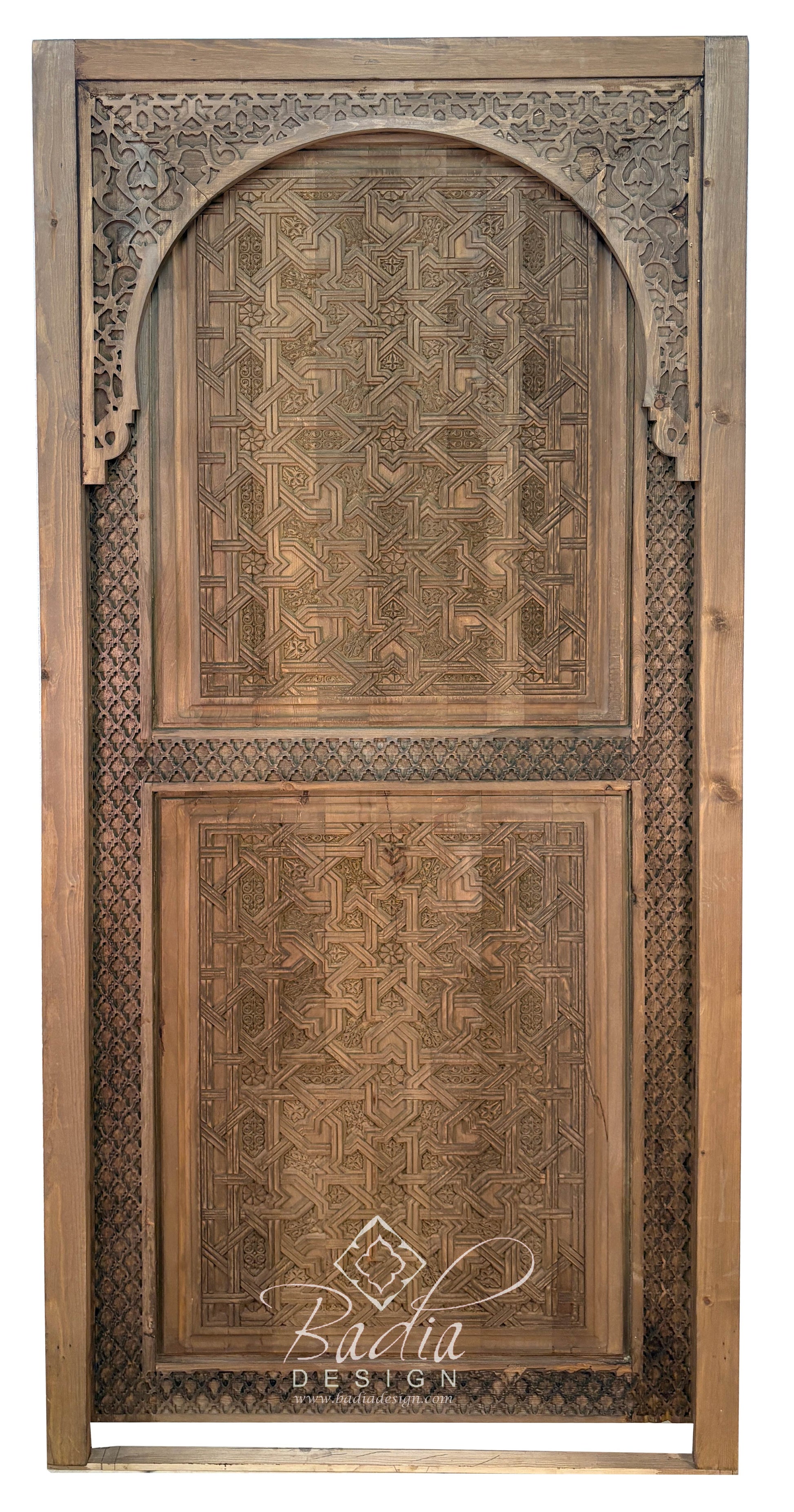Our Moroccan Stained Hand Carved Wooden Door is a stunning example of the artistry and heritage we bring to our customers at Badia Design Inc. Handcrafted in Morocco by our talented artisans, each door features intricate geometric and floral carvings that reflect centuries of cultural tradition. The deep stained finish enhances the natural beauty of the wood grain, creating an elegant and warm aesthetic that transforms any room or entryway.