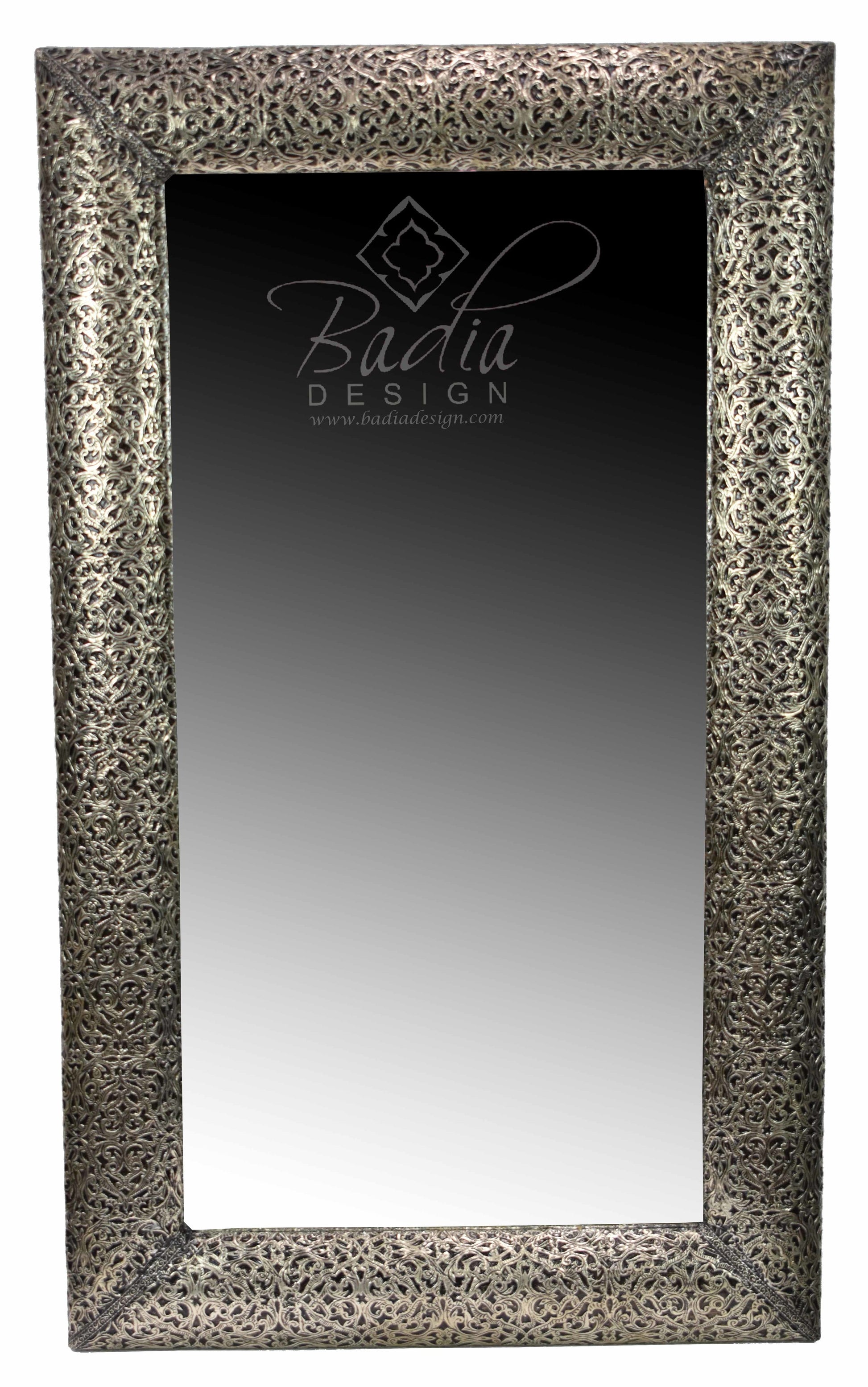 Moroccan Rectangular Shaped Embossed Silver Nickel Mirror