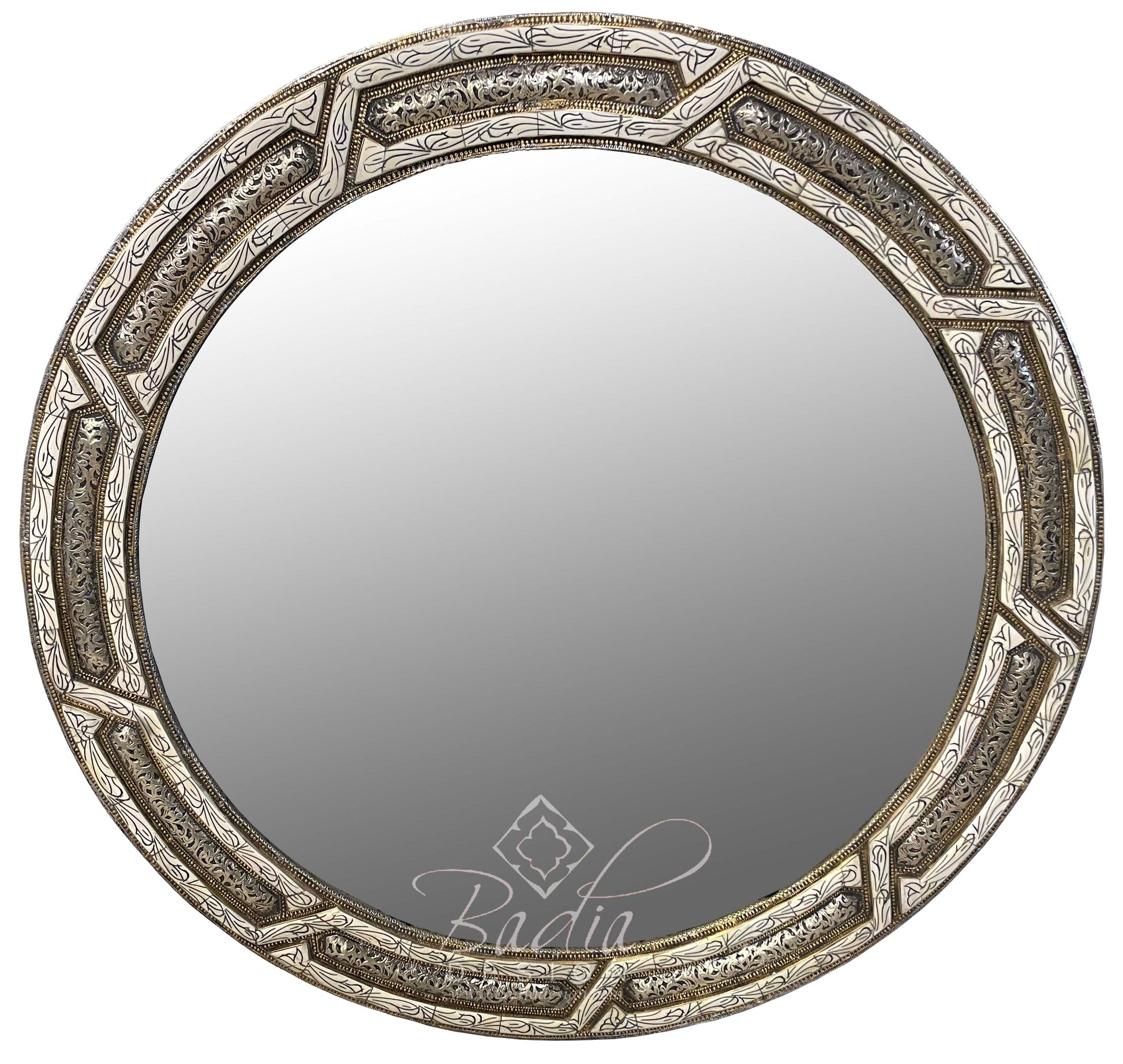 Moroccan Round Metal and White Bone Mirror