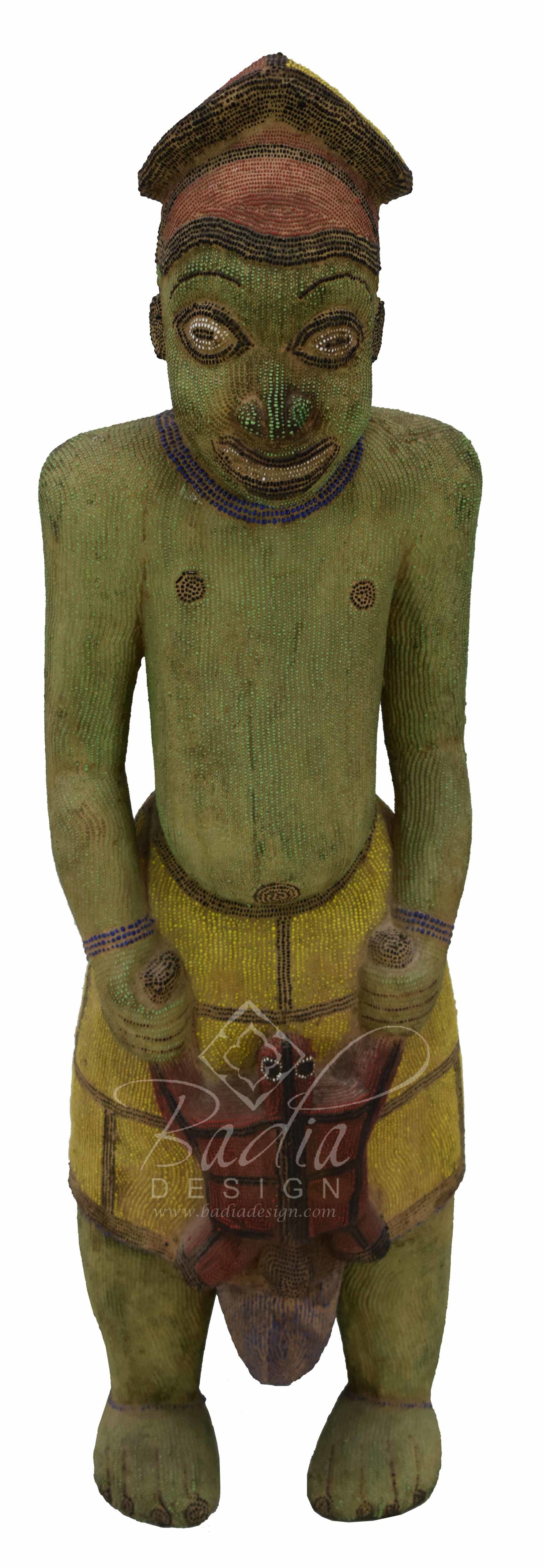Tall African Handmade Beaded SculptureThis is a one of a kind African Sculpture made of ceramic and adorned with colorful beads.Size: 9" W x 8" D x 39" HStyle #: HD232Note: Extra shipping costs may apply to this item due to its weight, size and your location. You will be notified by email of any additional shipping charges once the item is packaged and ready for shipment. We always look for the most competitive shipping company to minimize shipping costs to our customers.