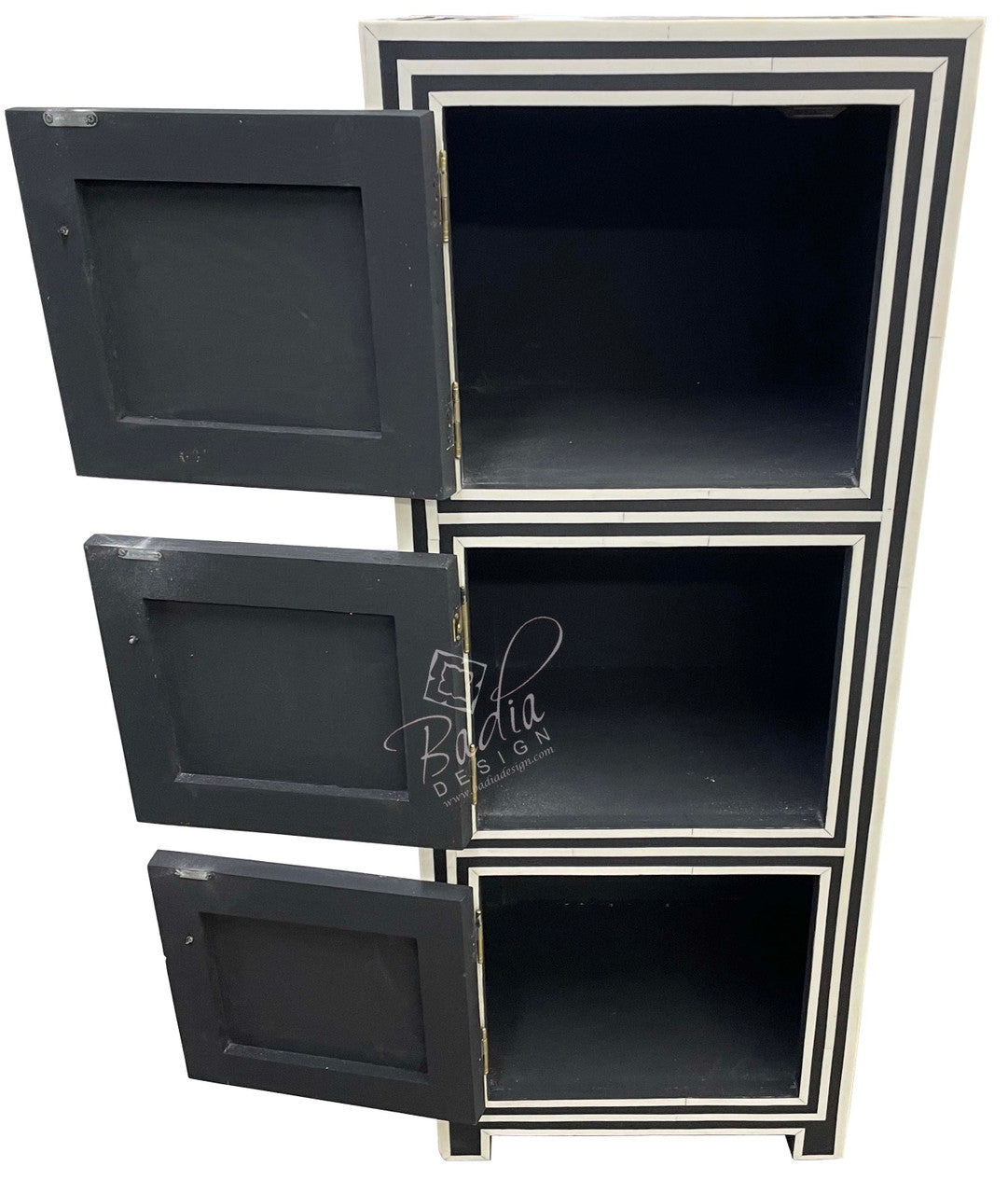 Tall Black and White Camel Bone Storage Cabinet
