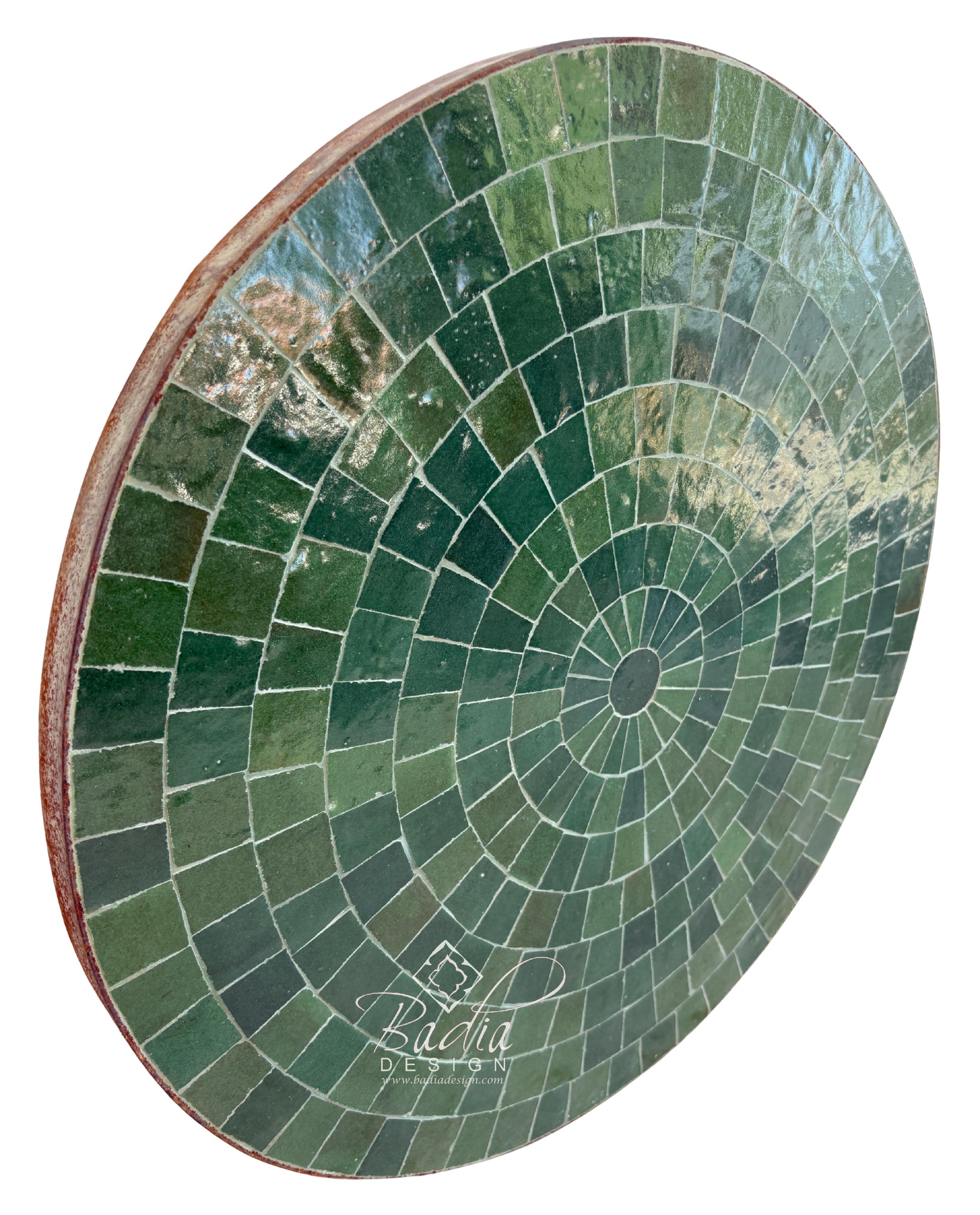 24 Inch Moroccan Round Emerald Green Tile Table Top