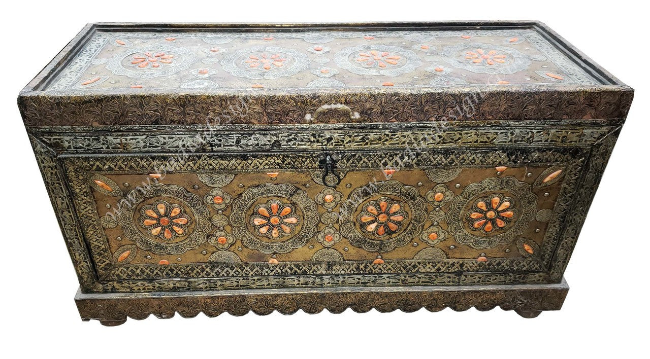 Vintage Embossed Metal and Orange Bone Inlay Trunk