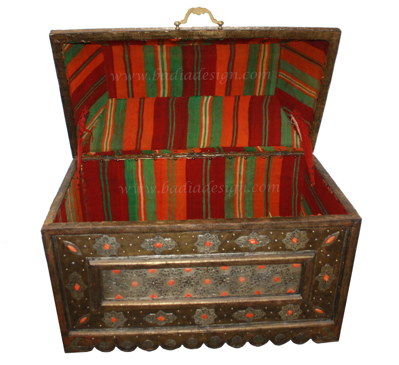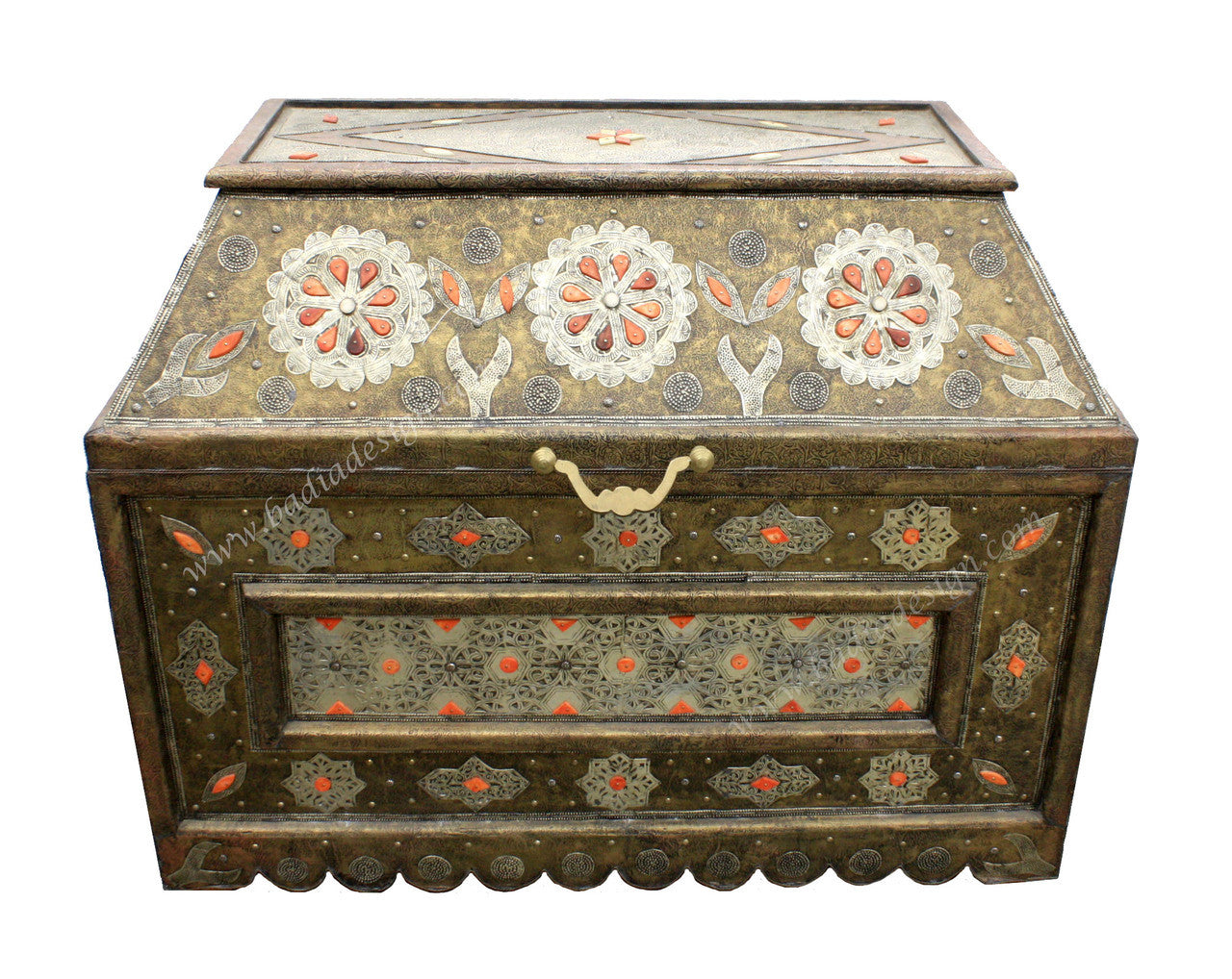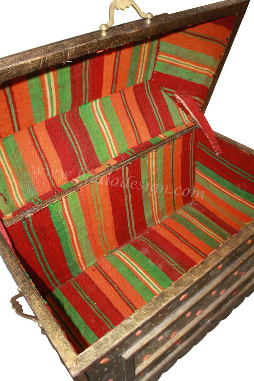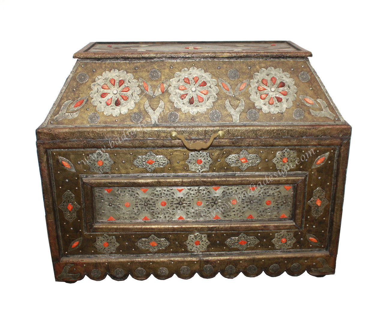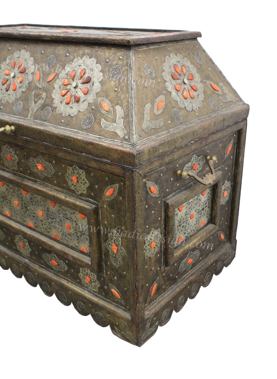 Vintage Embossed Metal Orange Bone Inlay Trunk